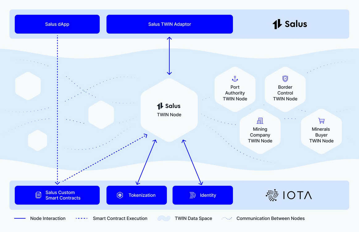 Salus es una plataforma DeFi de financiamiento comercial para minerales críticos que utiliza la tecnología de libro mayor distribuido (DLT) y contratos inteligentes de IOTA para digitalizar y asegurar la cadena de suministro de materias primas, creando confianza y desbloqueando capital mediante la tokenización de documentos comerciales y la identidad digital verificable (vLEI). La plataforma convierte documentos en papel en activos digitales seguros, permitiendo el financiamiento de transacciones de minerales como litio, cobre y tierras raras, y automatizando procesos de pago y auditoría.